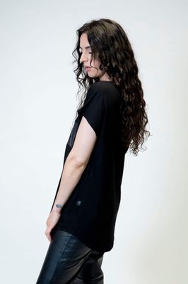 The top selling style - The drop shoulder is a classic flattering shape for all sizes. With a curved longer hemline created in 100% organic cotton.