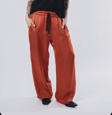 A refined take on comfort dressing. The Foundation Trousers are cut in a relaxed, fluid silhouette and finished in a light ember tone with a subtle, faint print woven through the fabric. The photography captures them slightly brighter than they appear in real life — in person, the colour is softer, warmer, and quietly rich.