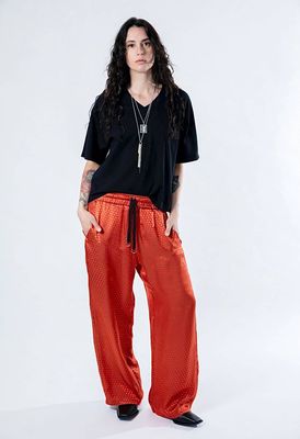Designed with an elasticated drawstring waist, finished with silver ring detailing, these trousers are exceptionally comfortable — the kind you forget you’re wearing — while still holding enough structure to move easily from day into evening.