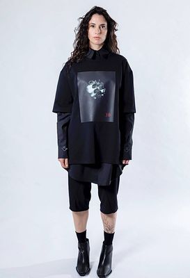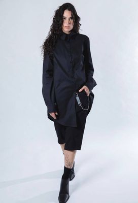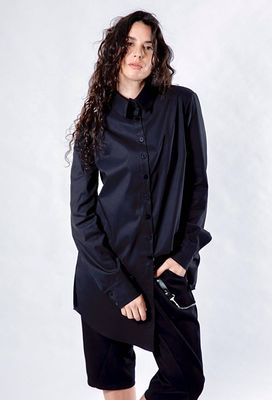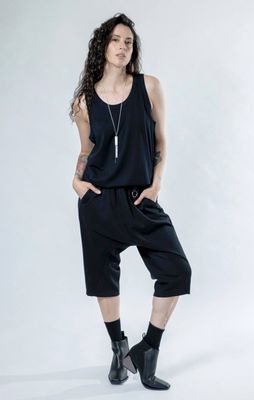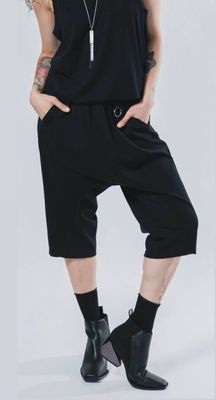 Designed for comfort without compromise, these black Foundation Shorts are crafted in a mid-weight, hard-wearing cotton lycra with just the right amount of stretch. A thoughtfully placed lower-leg seam creates an interesting line through the garment, offering a relaxed silhouette that nods to a drop-crotch style — subtle, wearable, and refined rather than exaggerated.